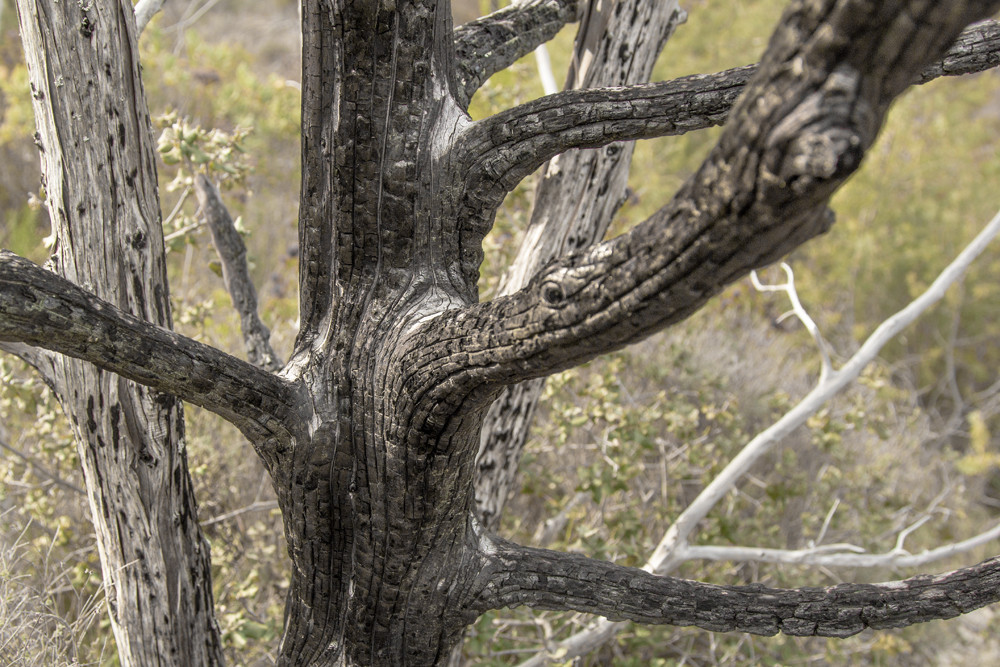 For me, walking in nature is a meditation that nourishes my mind, body and soul. Hiking this weekend, in an area recently engulfed by forest fires, I took these photos. The ferocity of the fires was clear – whole mountainsides and valleys burnt to a cinder. Trees burnt to stumps and rocks splintered in the heat. I could not imagine how anything could have survived such an apocalypse. And yet, just a few years later, new growth had blossomed. I was particularly struck by the beautiful way microbes and insects had dismantled and digested the remains of the blackened trees, and began the cyclical transition from sterile remains into fertile earth.