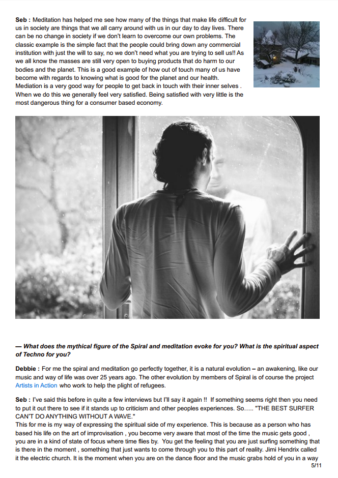 Debbie met Denis Robberechts, a 10-year meditation and retreat leader, and told him about her tandem worlds. “I explained to him about my techno background and the chaos of it all, but also the creativity—how so many people I know, myself included, find themselves in a loop with the scene,” says Griffith. “They see a glimpse of something spiritual on the dancefloor, a connection with the music—whether enhanced by drugs or not—and then continue trying to find that same feeling, often getting deeper and deeper into the drugs and losing the connection.”